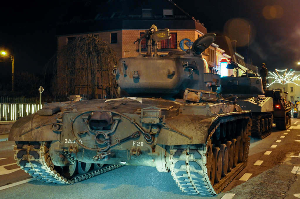 Pour finir la journée, nous reprenons la direction de Bastogne. Par rapport à ce matin, plusieurs chars du Musée Royal de l'Armée sont arrivés : M26 Pershing, Sherman M4A3 "Jumbo" et M4 105mm, M22 Locust ainsi qu'un Bergeleopard de l'Armée belge. Ils regagneront ensuite les "Bastogne Barracks" par la route, le "Jumbo" ne disposant plus de moteur étant tracté par le char de dépannage.