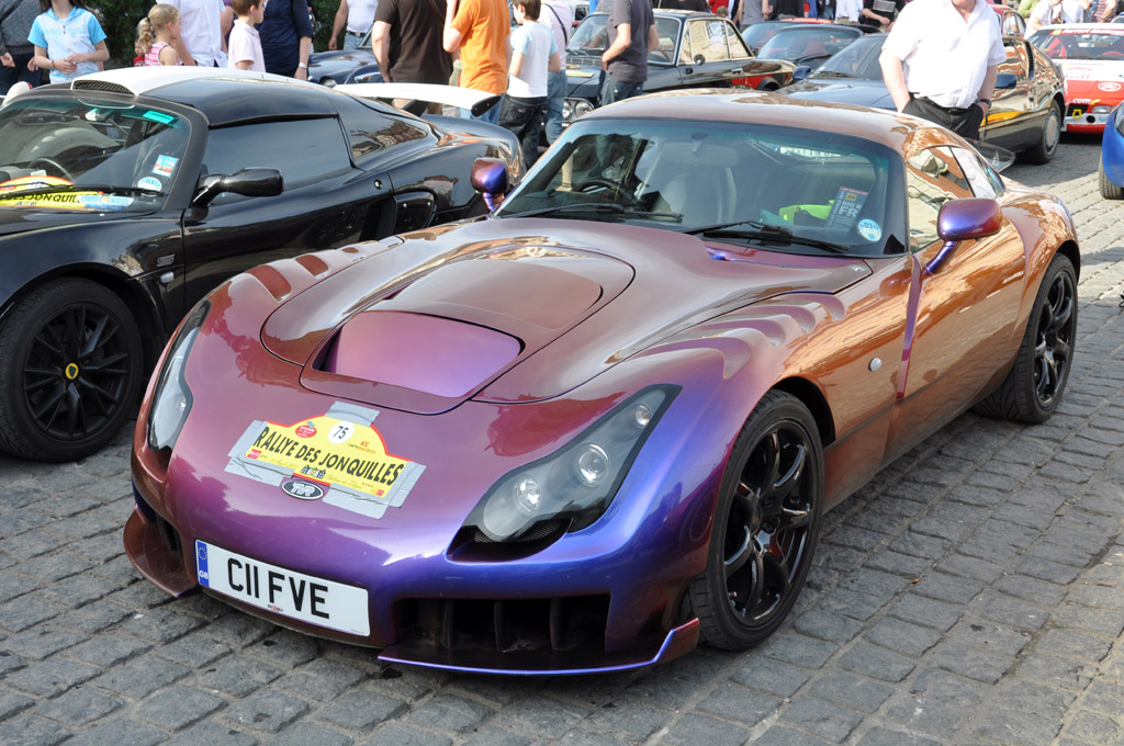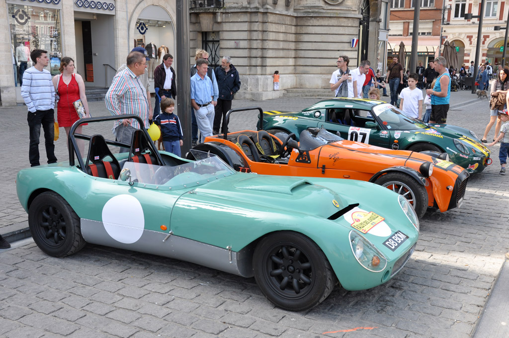 Les véhicules se rassemblent ensuite sur la Grand'Place de Béthune : Silva Stylus, Lotus Elise, Ford Mustang 70, Porsche 911 Carrera RS ou TVR Sagaris.