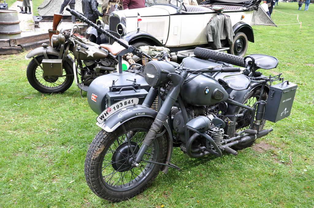 Arrivé sur le camp, on peut dire que c'est... décevant. Certes il y a tout de même ce rare High Speed tractor M5 International, quelques Jeep, des motos allemands tels ces BMW R75 et R12, mais c'est tout... Le camp allemand n'avait rien à voir avec la dernière fois.