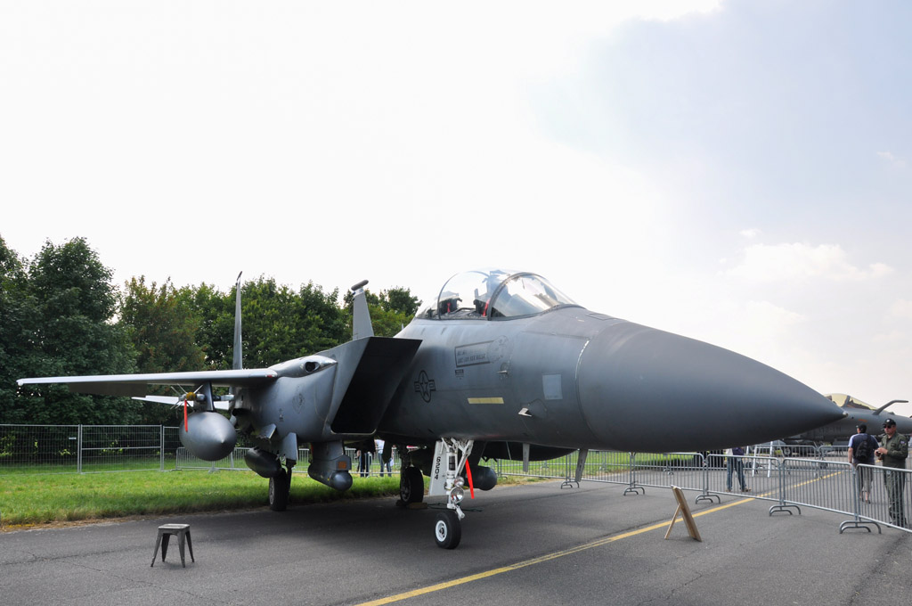 Le long d'une des routes d'accès étaient alignés de nombreux avions de plusieurs armées : Mirage 2000, Rafale, F16, F15,...