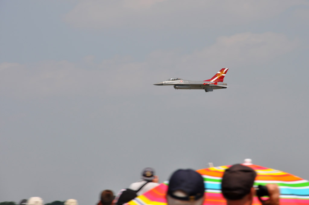 Etant organisée par l'Armée de l'Air, l'organisation militaire était naturellement réglée au millimètre. Le premier avion était prévu à 10h, et à 10h pile, ce F16 était dans les airs.