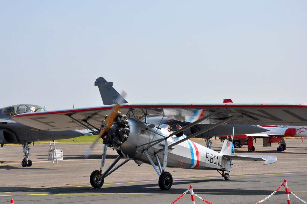 Sur le tarmac, en face de la zone de démonstration, on retrouvait entre autres, la patrouille de France, un autre Rafale ou ce Morane-Saulnier MS406.