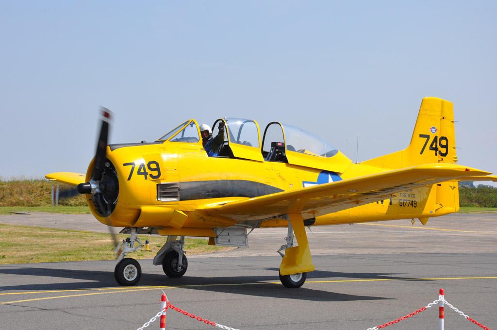 Après et avant chaque démo, les avions repassaient devant le public, ici, Potez 60, T6 Texan, T28 Trojan ou Fouga Magister.