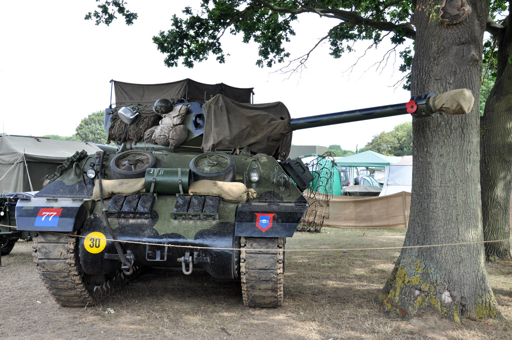Le côté américain n'est pas en reste avec également un très beau déploiement de matériel : GMC CCKW, dont un rare Clubmobile, Diamond T 969, Jeep Willys,... Quelques chars sont également à voir par-ci par-là, comme ce rare Valentine Duplex Drive amphibie, ou ce Sherman M4A1, une des premières séries construites.