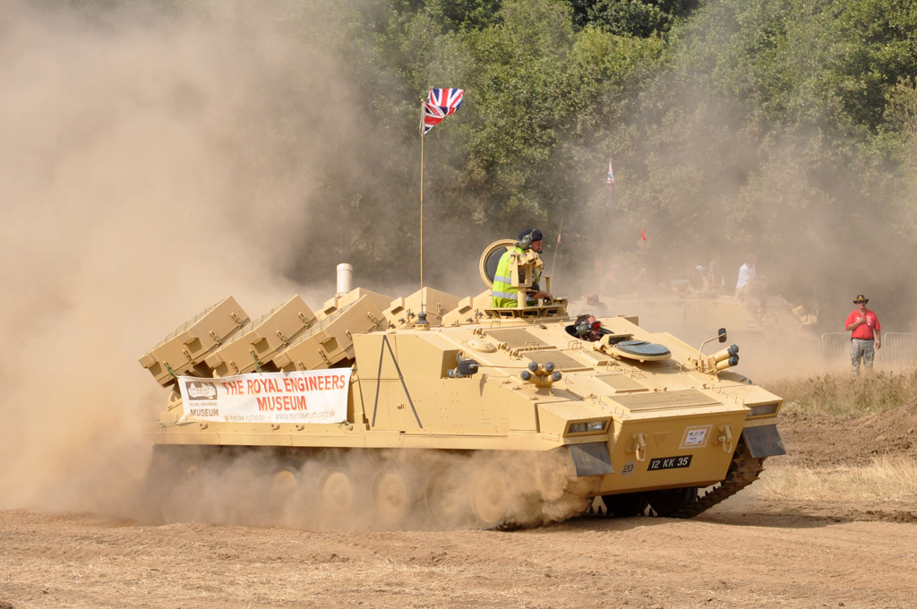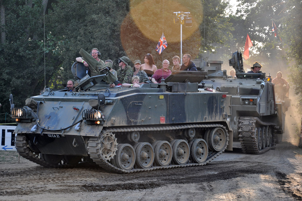 Un des points fort de l'évènement est également de disposer d'une arène, où différents véhicules se succèdent et évoluent tout au long de la journée. Ici : Alvis Saracen, FV432, M24 Chaffee, Abbott, Ford T16, Centurion...