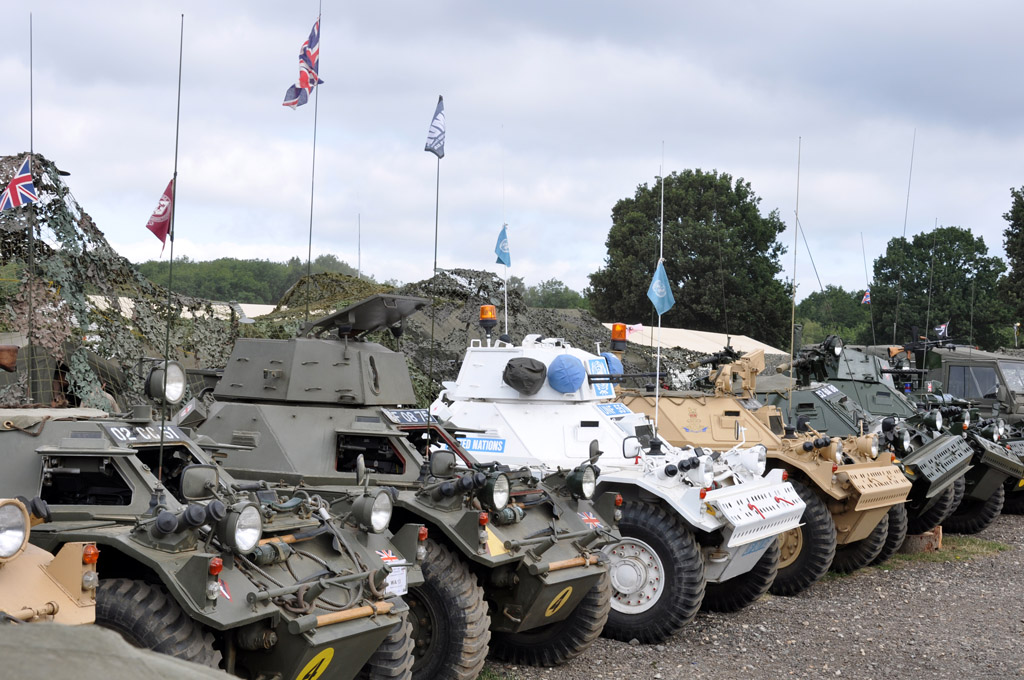 Nous pénétrons donc dans la première zone, où de nombreux véhicules britanniques de la Seconde guerre mondiale sont rassemblés. On a pas l'habitude d'en voir autant rassemblés à un même endroit. Les modèles sont variés : Humber Snipe Heavy Utility et FWD, Guy Ant, Austin K4 grande échelle, une chasseur de char Achilles, Bedford OYD, Austin K2 Ambulance, Ford Canada F60 de dépannage, Daimler Dingo, Chevrolet T17 Staghound,... On ne sait déjà plus où donner de la tête.