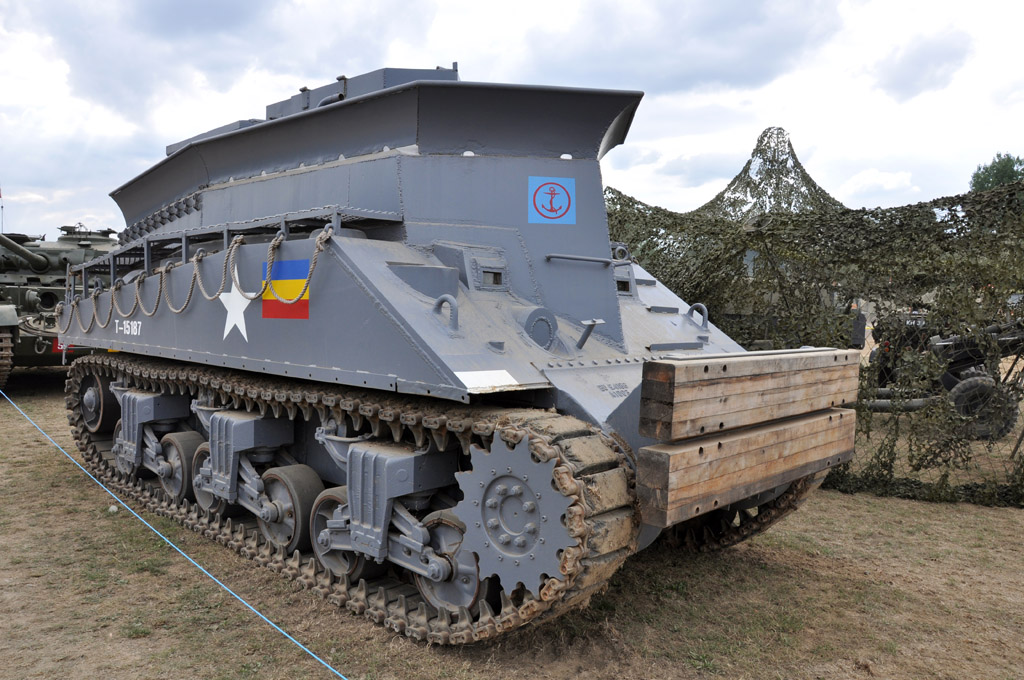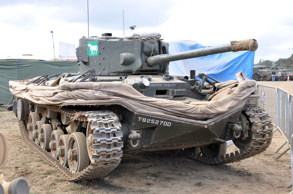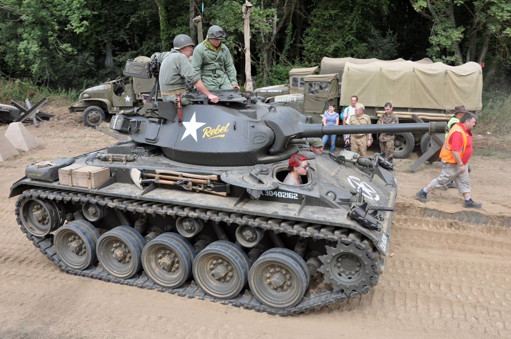 Nous remontons ensuite la grande allée pour nous rendre dans la dernière grande zone où sont stationnés toujours plus de véhicules. Les chars et blindés sont plutôt légions dans cette manifestation : M24 Chaffee, A34 Comet, FV180 Combat Engineer Tractor, M3A1 Half-Track, Sherman Barv (Beach Armored Recovery Vehicule, destiné à remorquer les véhicules en panne sur les plages), deux T34/85 ou encore ce T55.