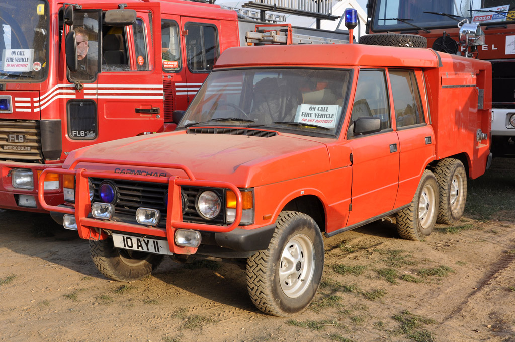 Dernies véhicules croisés : ce beau T72, ce rare Ford V3000 en version Maultier, ou cet insolite Range Rover 6x6 de pompier préparé par Carmichael.