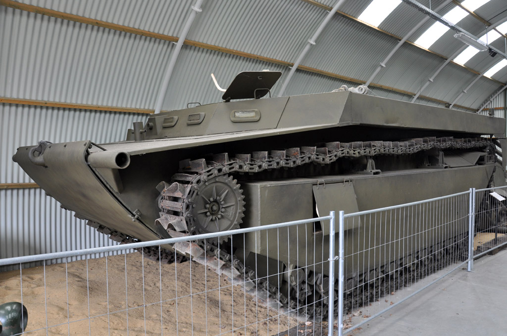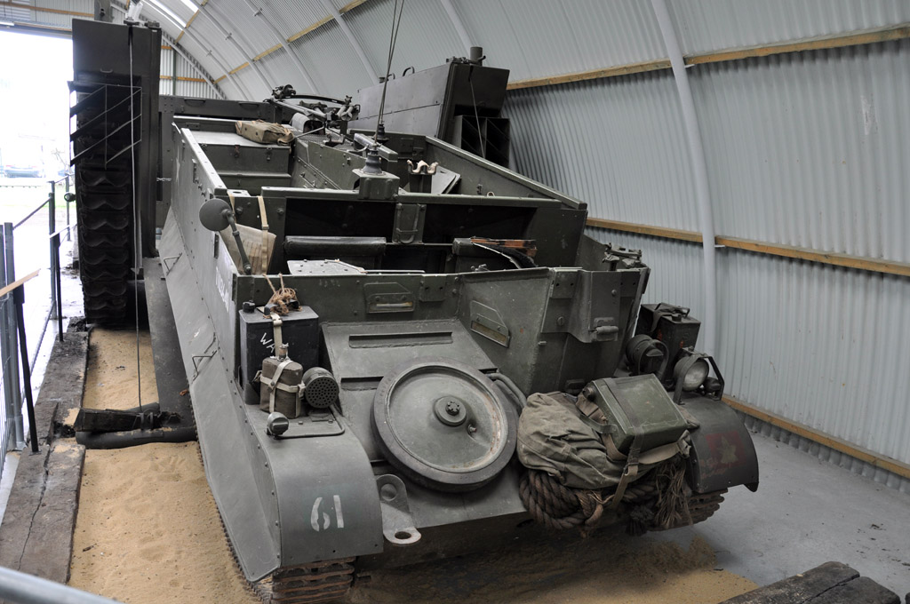Dans le deuxième hangar, on retrouve les véhicules alliés, principalement anglais et canadiens, leurs armées ayant libéré la région en septembre 1944 : Ford F60 ambulance, Ford T16 sortant d'un LVT-4, Chevrolet T17 Staghound ou Morris Armored Car.