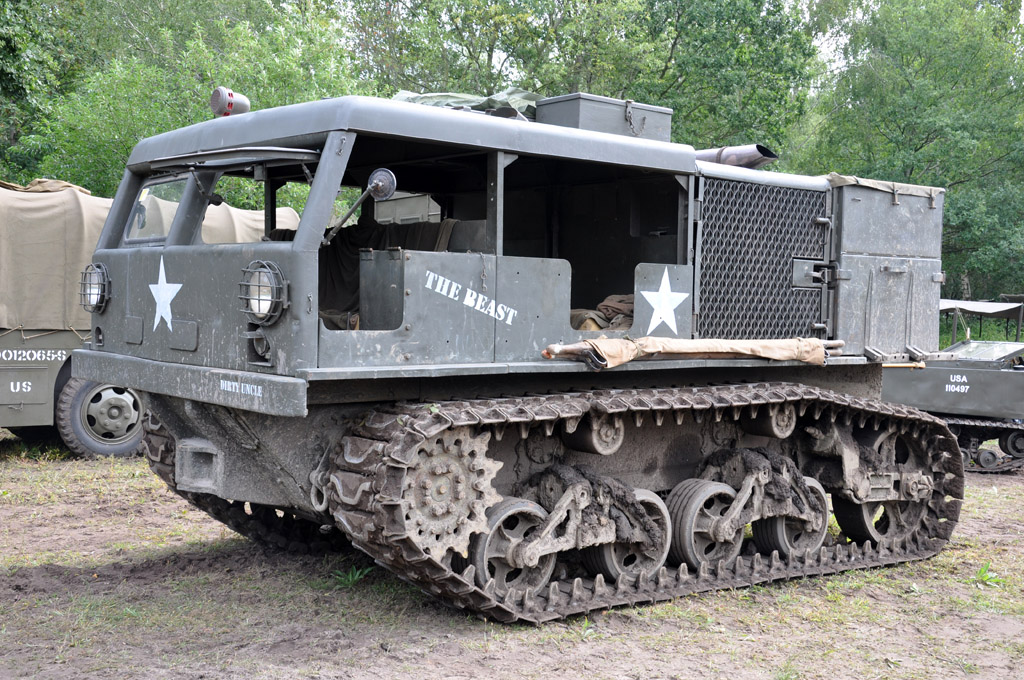 Autres véhicules à chenilles avec des High Speed Tractor : deux M4 Allis-Chalmers, une M5 International, un bulldozer Caterpillar D4, ainsi qu'une rare Lloyd Carrier.