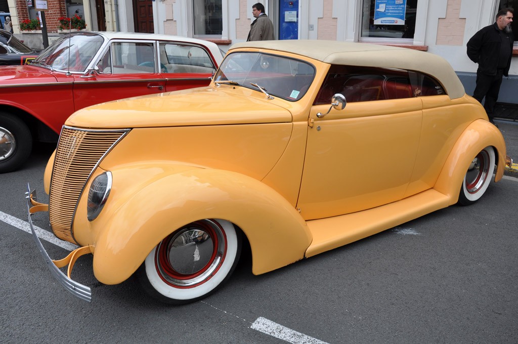 En ce dernier dimanche d'août, direction le centre-ville de Béthune dans le Pas-de-Calais, pour la 8ème édition de Béthune Rétro, un Festival Rock'n'Roll et Rockabilly qui, en plus des passionnées de musique du genre, rassemble quantité de voitures anciennes, dont de très nombreuses Américaines. Nous commencerons par le point central de la concentration des voitures originaires d'outre-Atlantique, la place du 73ème. Comme toujours, les hot rods et customs sont légions, et on retrouve du Ford 32 dans tous les coins...