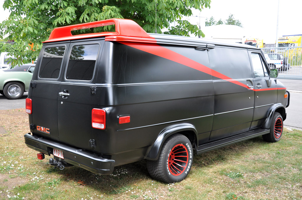De nombreux vans également, comme ces GMC Vandura, dont celui-ci reprenant les couleurs de l'Agence Tous Risques, ou du Sport Utility Vehicle, comme cette Jeep Wagoneer.