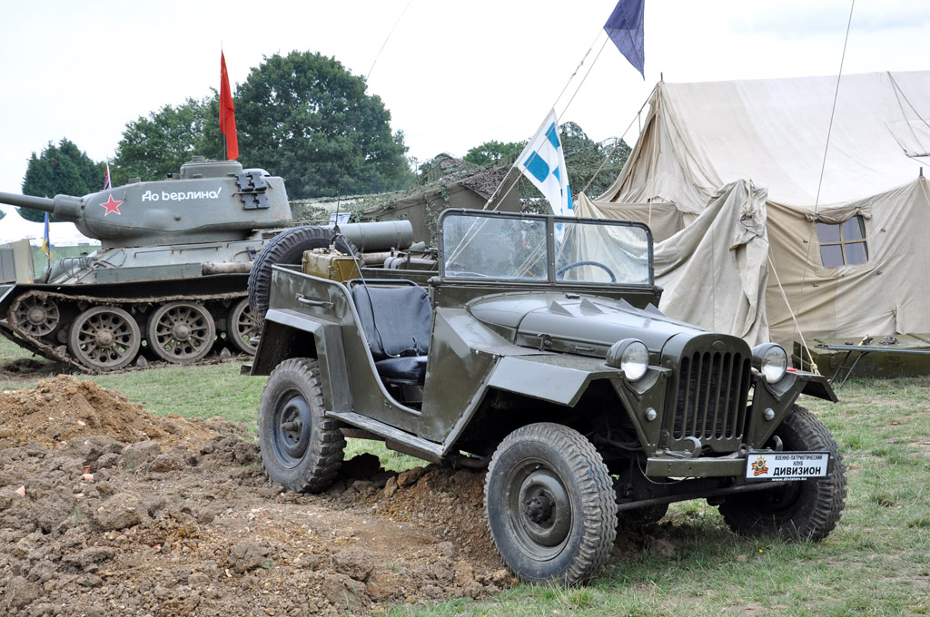 Nous retournons du côté des groupes de reconstition. Certains ne font pas les choses à motié, à l'image de ce GMC CCKW353 couché sur le côté. Autre véhicules trouvés au milieu de toutes ces tentes : GMC CCKW Bolster, Opel Kadett ou T34/85.