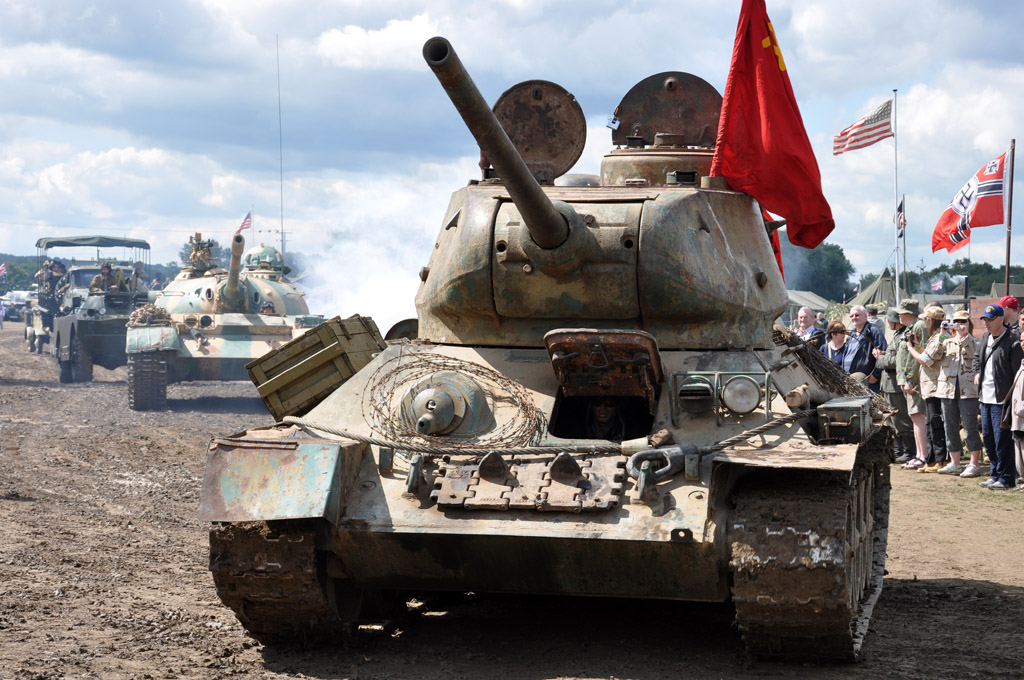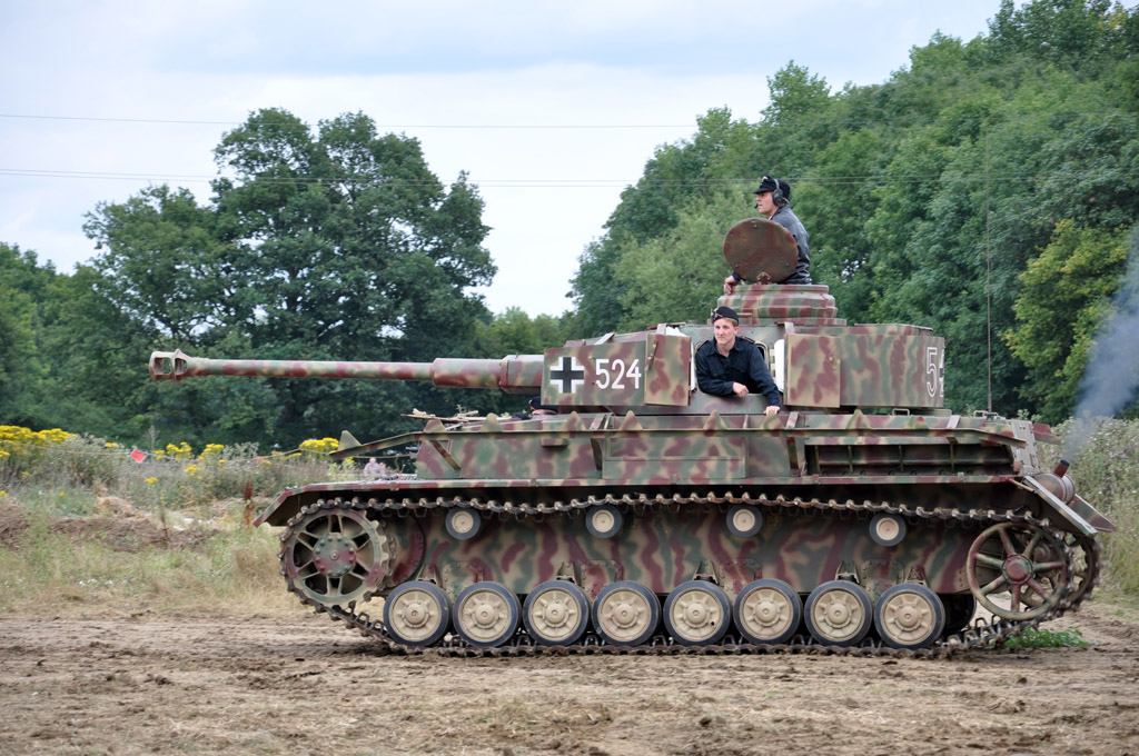 Contrairement à l'année passée, après les groupes de reconstitution, nous enchaînons directement avec la plus grande zone où sont installés divers véhicules, dont des blindés : un superbe Panzer IV, récemment restauré par le musée de Jordanie, mais malheureusement restauré pour le moment avec un moteur moderne de FV432, T34/85, Ram Kangaroo, Scimitar ou FV432.