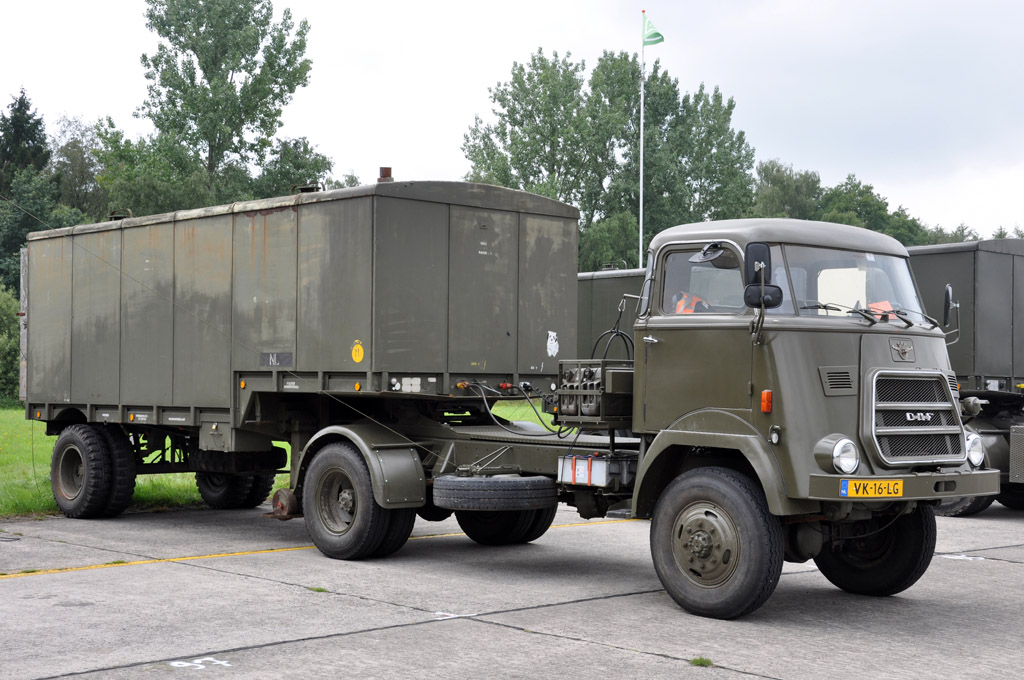 Une belle brochette de véhicul Daf, issus des surplus de l'Armée néerlandaise : YA66, YA126, YA328, YT514 ou 1500.