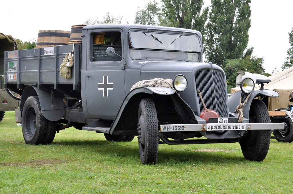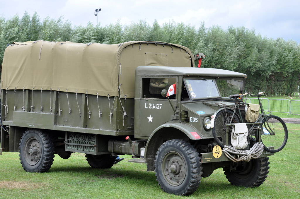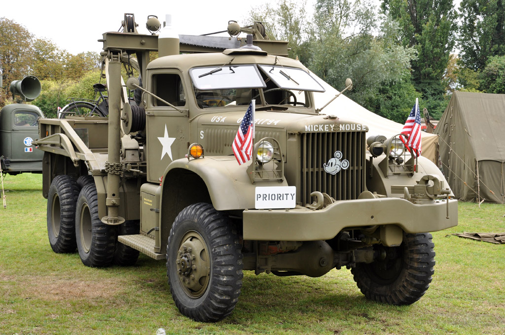 Dans le camp, on retrouve les véhicules d'hier : Diamond T 969, Jeep Willys aux couleurs de la Navy, Ford Canada F60L ou Citroën U23 aux couleurs allemandes.