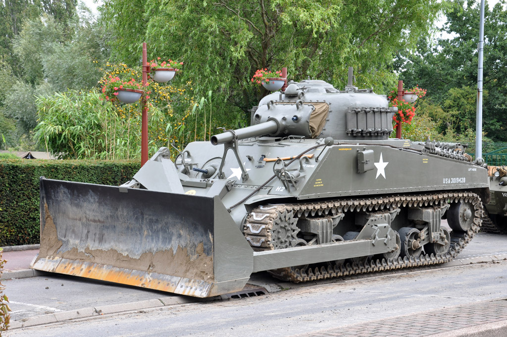 Le dimanche, en revenant du défilé de Souchez, nous repassons par le campement d'Annezin. Les chars, cette fois-ci déchargés, sont installés à l'extérieur du camp. Il n'y a personne autour, l'occasion de les admirer tranquillement. Le Sherman Dozer est réellement impressionant. Malheureusement il n'a pas gardé son moteur d'origine et a reçu un moteur diesel moderne. Le Chaffee présente la particularité d'être équippé des ses chenilles métalliques, chose qu'il n'est pas courant de voir sur ces modèles.