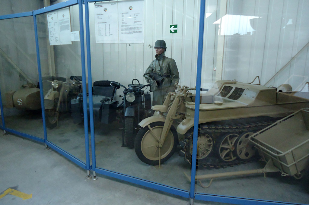 Quelques véhicules allemands de la Seconde guerre mondiale parsèment les allées : Sd.Kfz 9 Famo, Sd.Kfz 7/1, Sd.Kfz 232, Goliath, Kettenkrad, BMW R75,... Malheureusement, les Panther, Panzer III et Stug III que je pensais dans ce musée ne sont pas là... Après avoir questionné un membre du personnel, j'apprendrai qu'ils sont désormais dans une caserne à Trèves et ne sortent que lors d'évènements, ce qui est bien dommage...