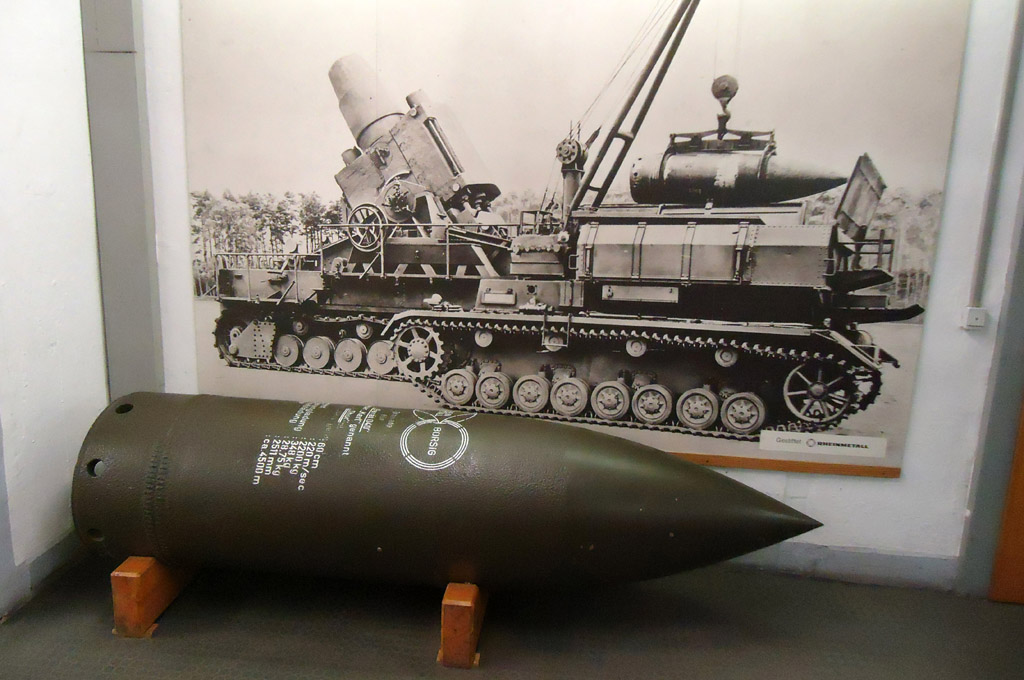Une première partie de l'exposition est consacrée à l'artillerie. Des centaines de canons s'alignent devant mes yeux. Ici, une munition du monstueux mortier Karl, probablement le véhicle chenillé le plus gros jamais construit, ou ces monstrueux canons.