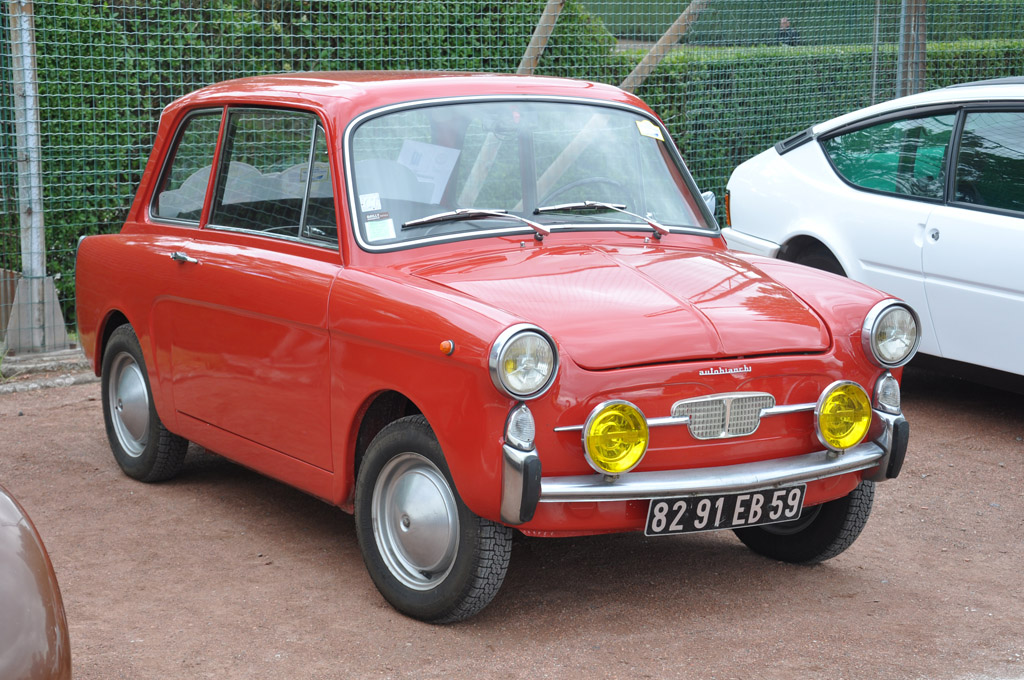 Là, des voitures "populaires" : Autobianchi Bianchina, Opel Manta ou Ford Mustang coupé.
