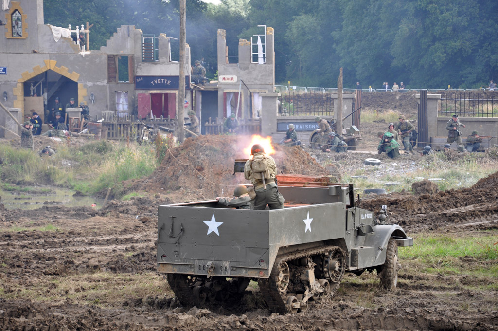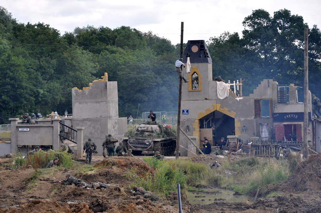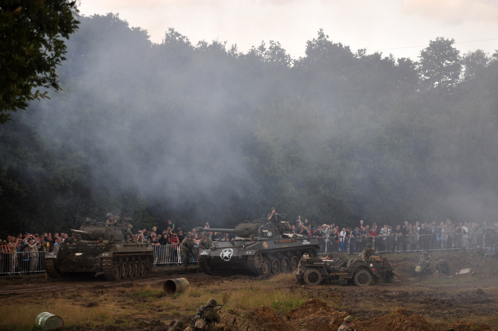 Puis, une deuxième reconstitution de bataille aura lieu, cette fois-ci avec des faux Stug III, des Hellcat, un Stuart et un Sherman, dont le chef de char s'est déguisé en "Oddball", du film "De l'or pour les braves" (Kellys Heroes en VO).