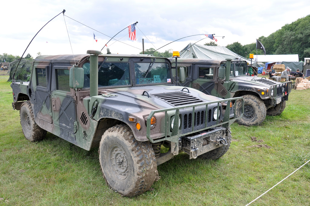 Nous décidons de repartir à la voiture pour la pause du midi. En chemin, nous croiserons ce Humvee, ces Zil 131, ce Leyland-Daf Drops transportant un Alvis Stalwart ou un Hummer H1 sur le parking visiteur.