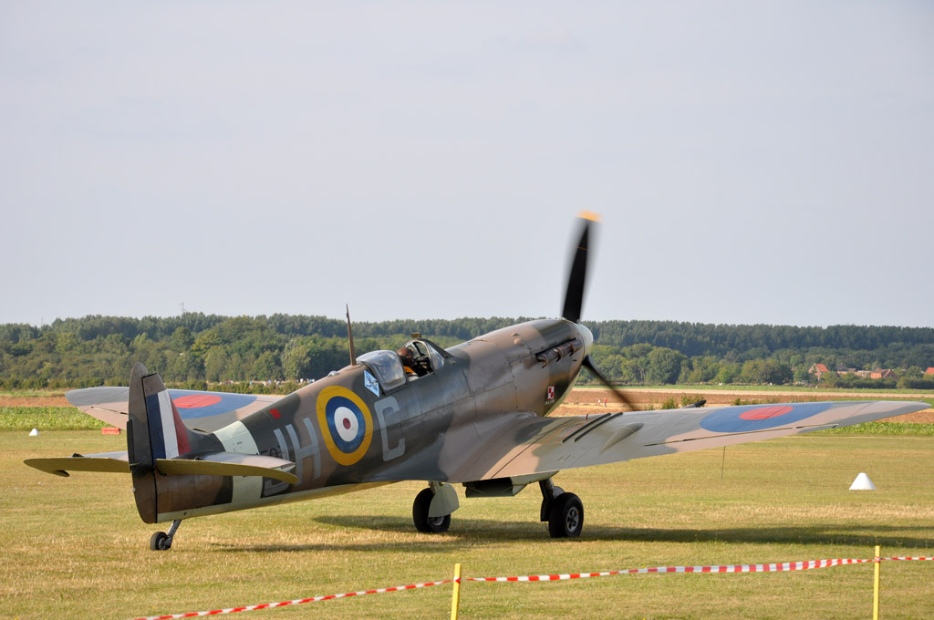 Celui que nombre de passionés attendait entre enfin en piste : ce Spitfire Mk.V ! Le bruit du V12 Rolls-Royce Merlin est tout simplement fantastique.