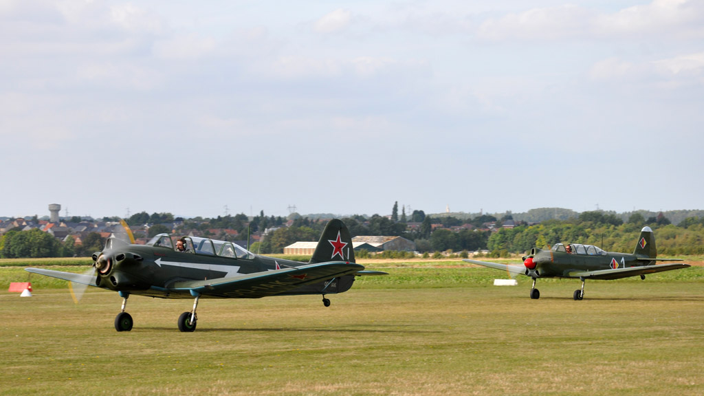 On passera après du du plus calme, avec les Fieseler Storch, Yak-52 et autre Tiger Moth.