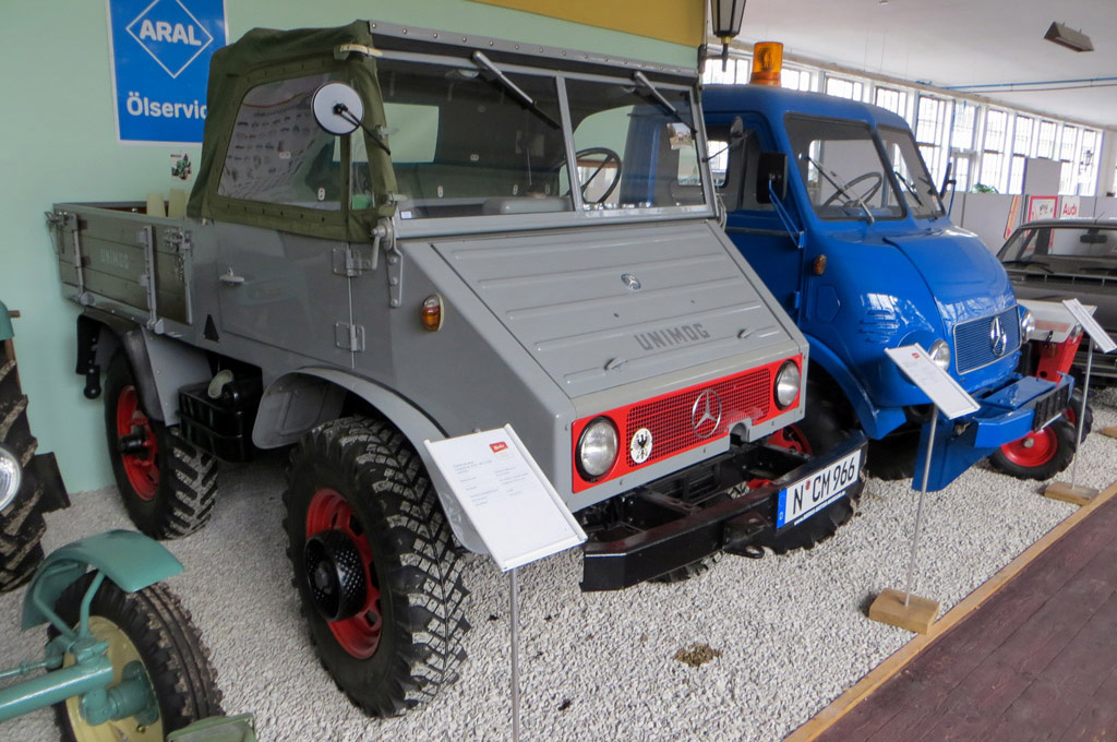 On y trouve également quelques voitures d'avant-guerre, des motos, ainsi que ces deux Unimog.