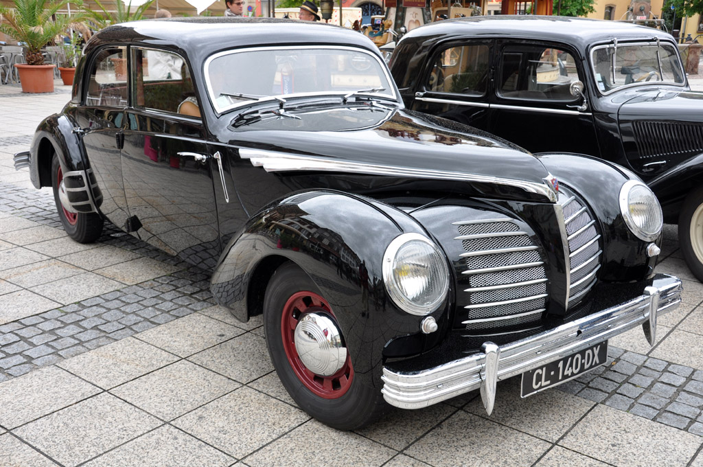 Arrivée dans le centre-ville, plusieurs voitures sont installées sur la place de l'hotel de ville (Rosengard, Lorraine-Dietrich, Matford,...)