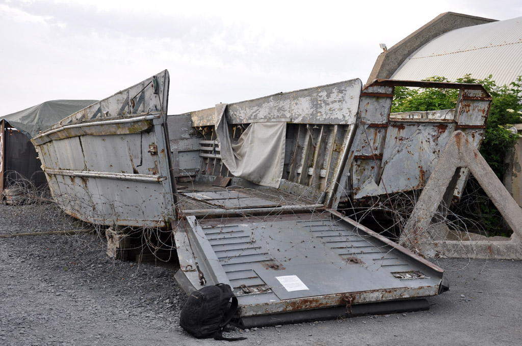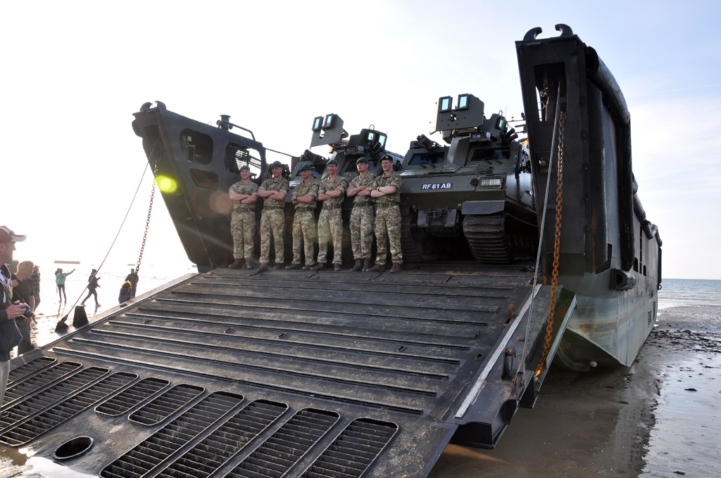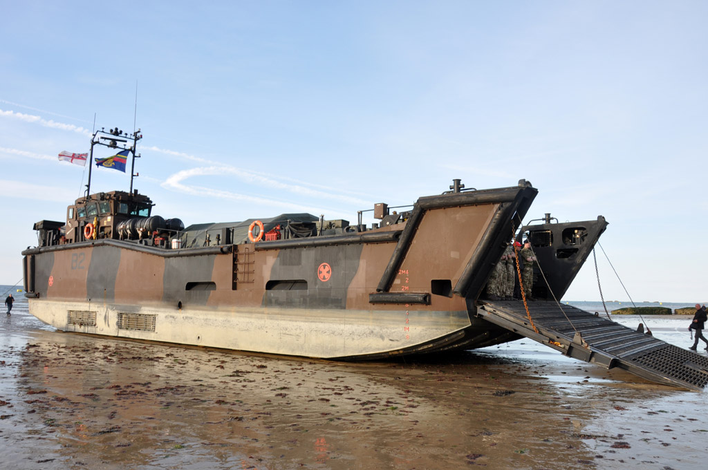 Sur la plage, cette barge de débarquement moderne de l'Armée britannique était en exposition.