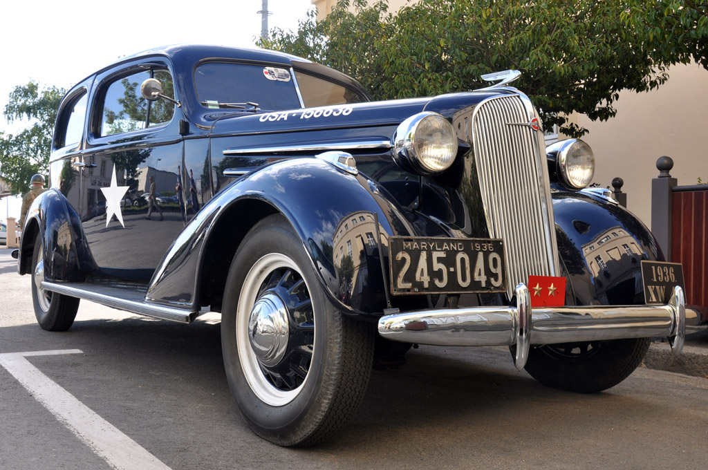 Après le défilé, nous retrouvons quelques véhicules stationnés : Ford M20, GMC équipée d'une citerne à eau, Dodge WC55 équipé d'un canon de 37mm ou cette Chevrolet de 1936.