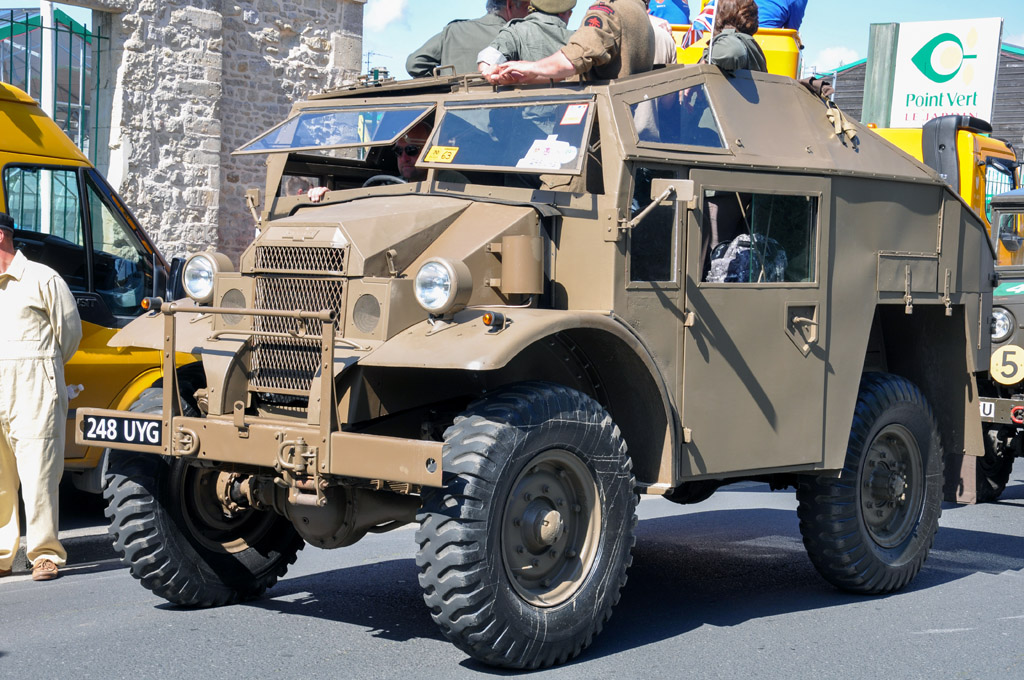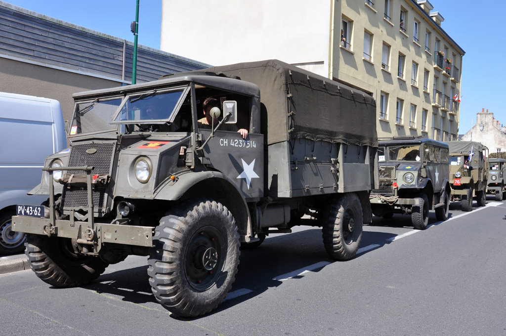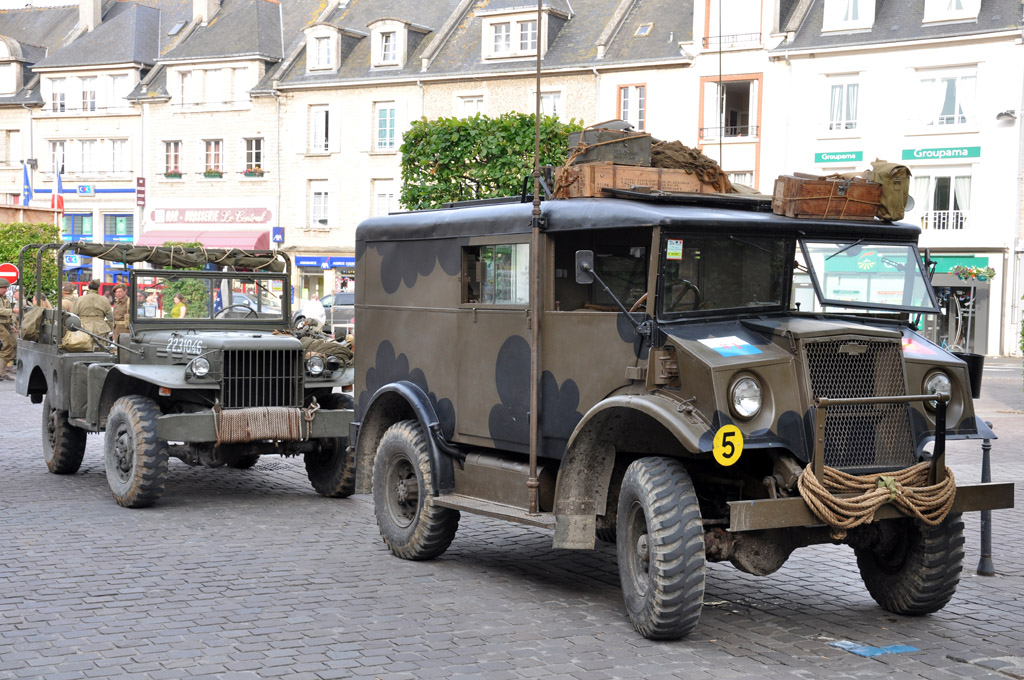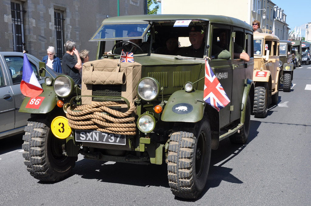 Le dimanche matin, après un passage par Cabourg, pour une exposition de vielles voitures, nous prenons la direction de Bayeux pour un grand défilé de véhicules britanniques. Et ils sont venus en force. De nombreux modèles sont présents pour défiler dans les rues de la ville : motos, staff cars, camions en tous genres (Bedford QL, MWD, Austin K3, K6, Fordson WOT2, WOT6, Ford F30, F60, Chevrolet Canada F15, F60, Scammel R100, Pioneer...), ou blindés (Daimler Dingo, Humber Mk.IV,...)