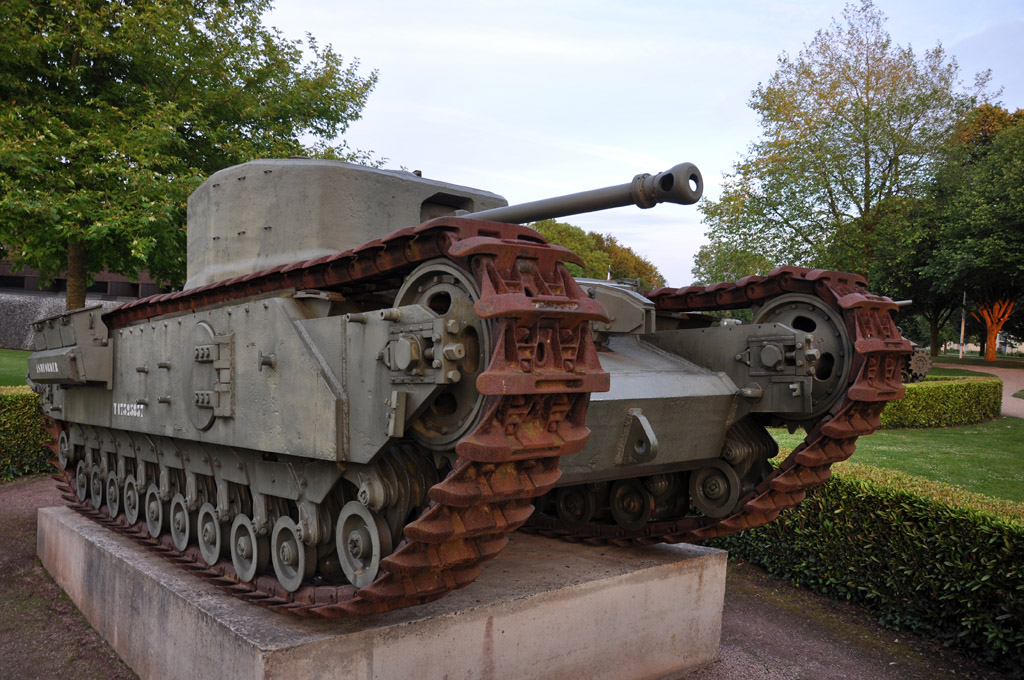 Avant de rentrer, nous faisons un petit détour par Bayeux pour voir les chars installés devant le musée : M10 Destroyer, Sherman M4A1, Churchill Crocodile ou Hetzer G13.