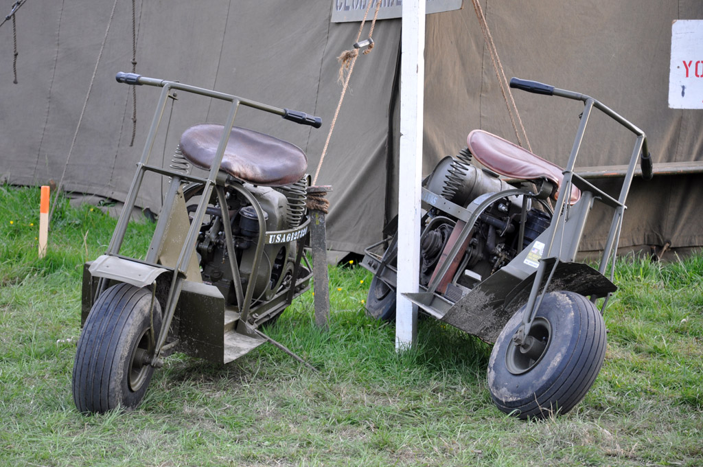 De nombreux véhicules rares font partie de ce défilé : Harley-Davidson XA et Indian 841, Studebaker US6 ou Loyd Carrier.