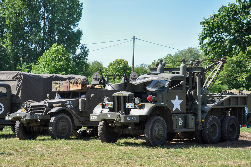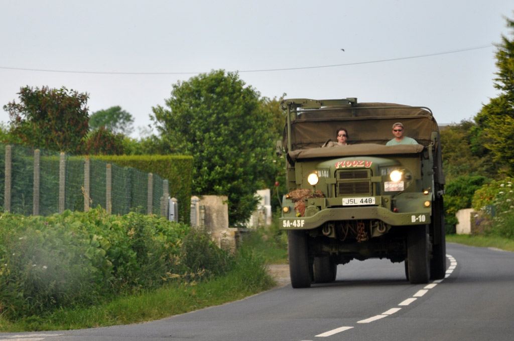 Nous reprenons ensuite la route pour notre point de chute durant ce weekend prolongé, qui se situe à l'est des plages du débarquement. Sur le chemin, nous croisons divers véhicules, Ford G8T, transformé à l'époque en 4x4 par Marmon-Herington (à priori ce serait d'origine un chasse-neige, restauré avec une benne), Chevrolet Canada C8, ou Mack NO.