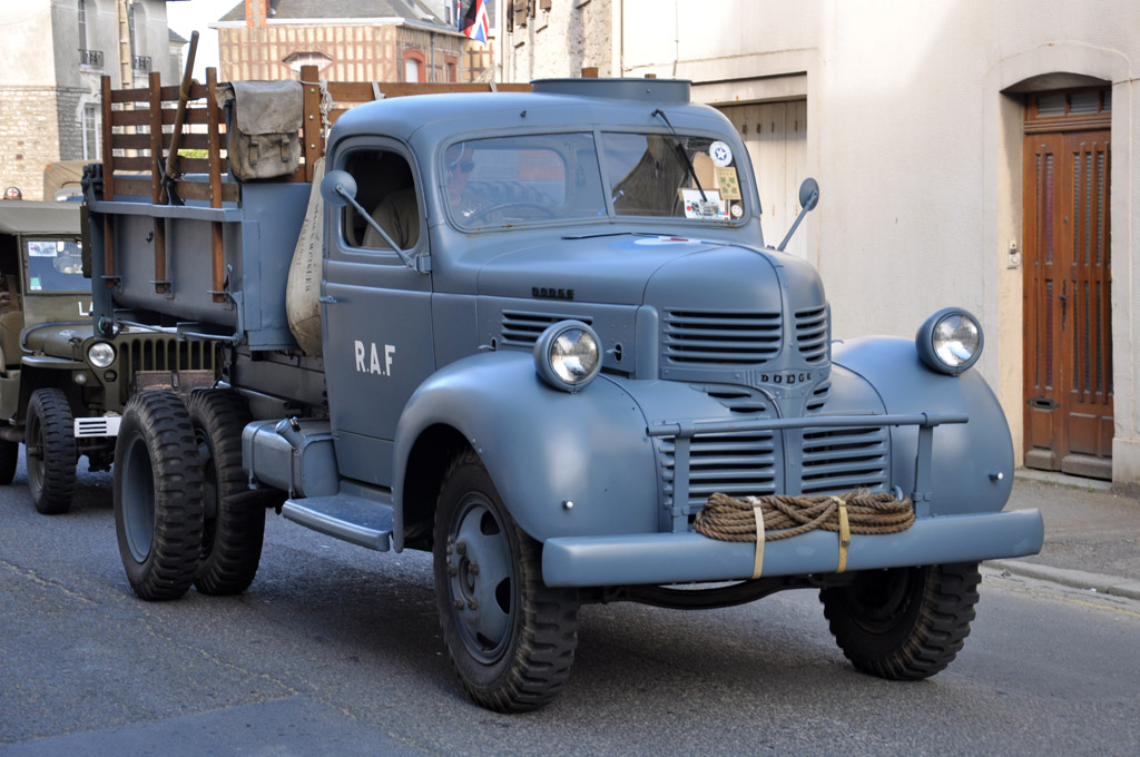 De nombreux autres véhicules y sont présents : Peugeot 402, Diamond T 969, Federal 94x43, Autocar U8144, GMC CCKW, Ford M8 et ce Dodge D60 croisé dans la ville.