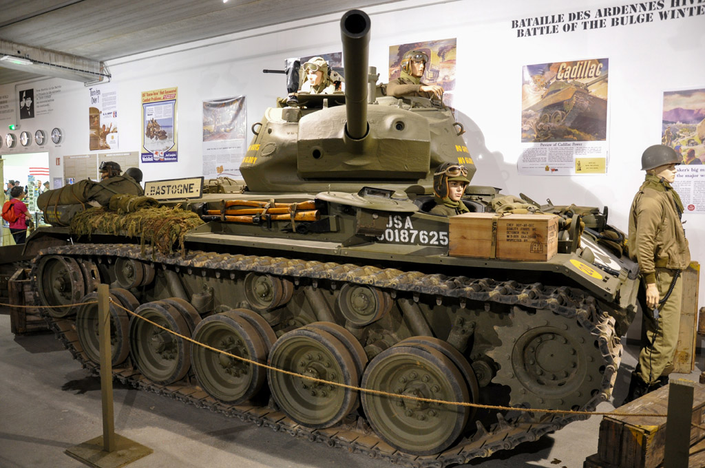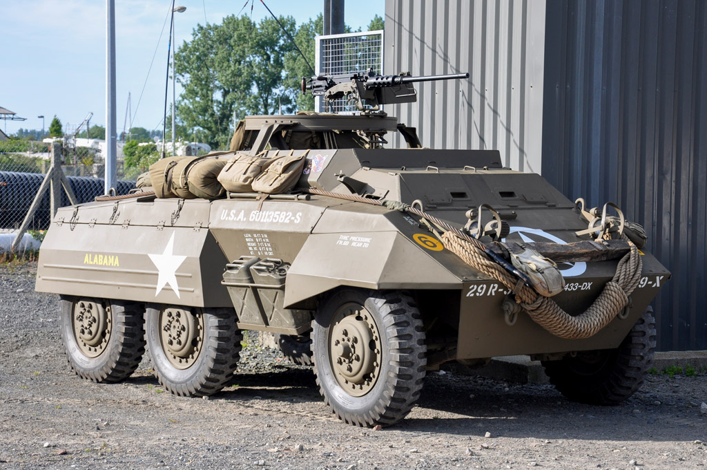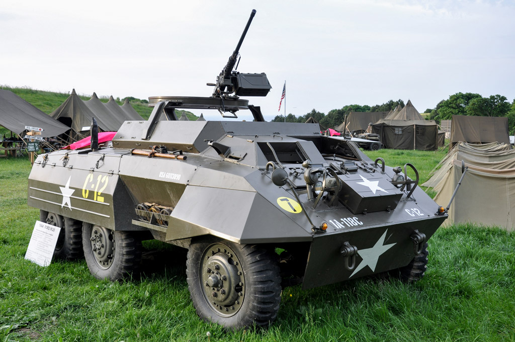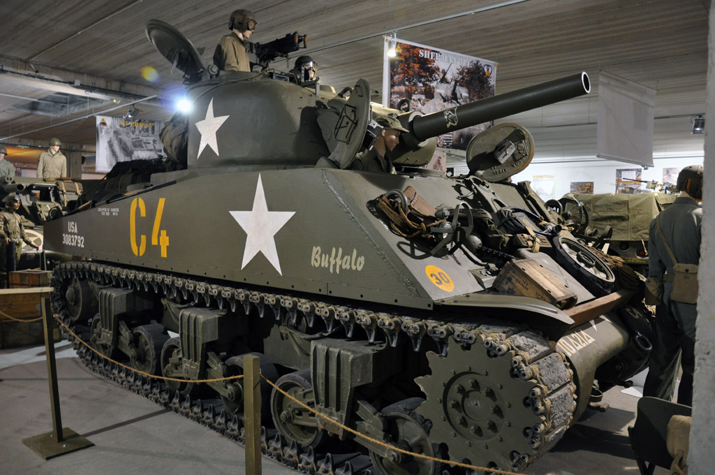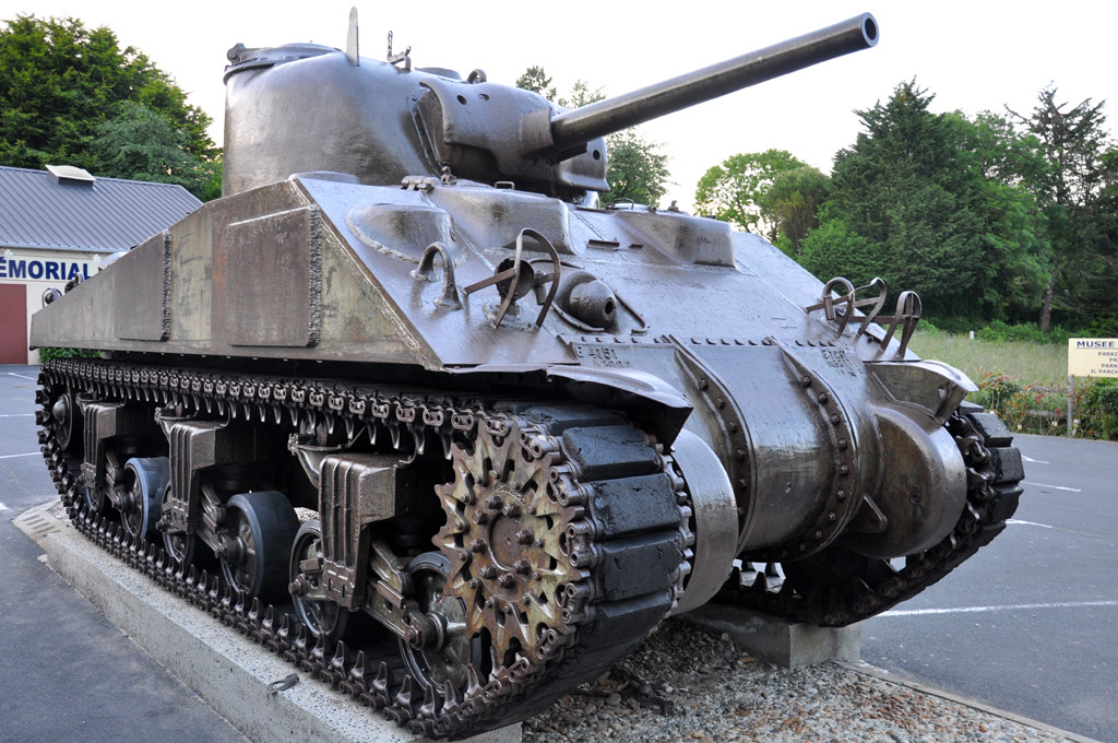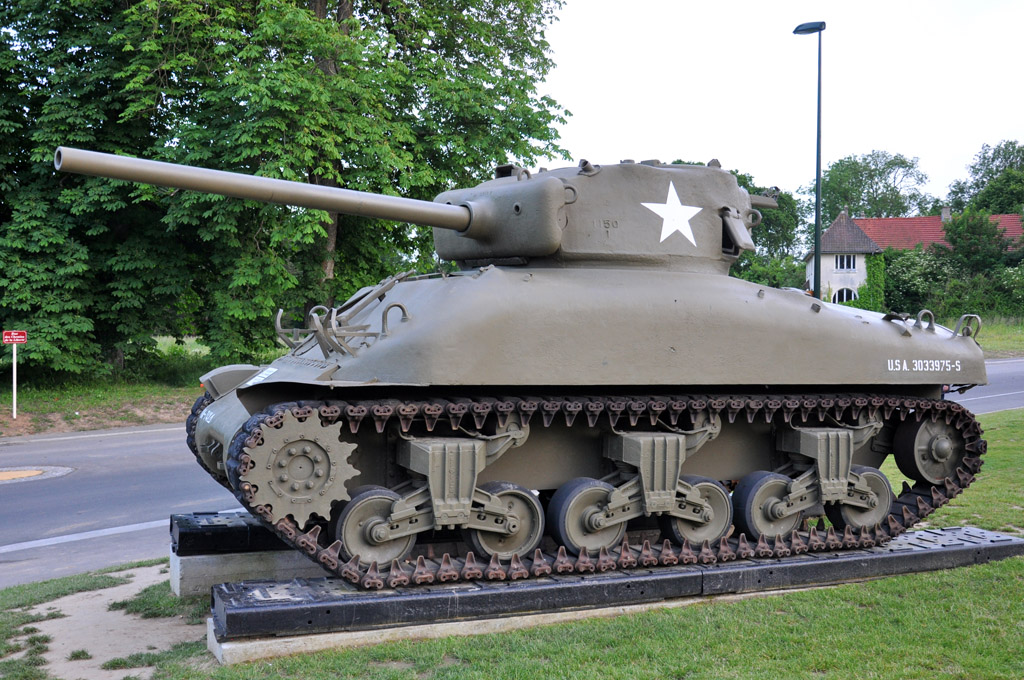 Nous nous rendons ensuite à Sainte-Mère-Eglise où se tient le grand campement du MVCG France. De nombreux blindés y sont exposés : Stuart M3A1, le Sherman M4 76mm HVSS "Fury" ayant été la doublure du char officiel sur le tournage du film éponyme, Sherman M4A1 (en fait un Grizzly), M18 Hellcat et M10 Destroyer.