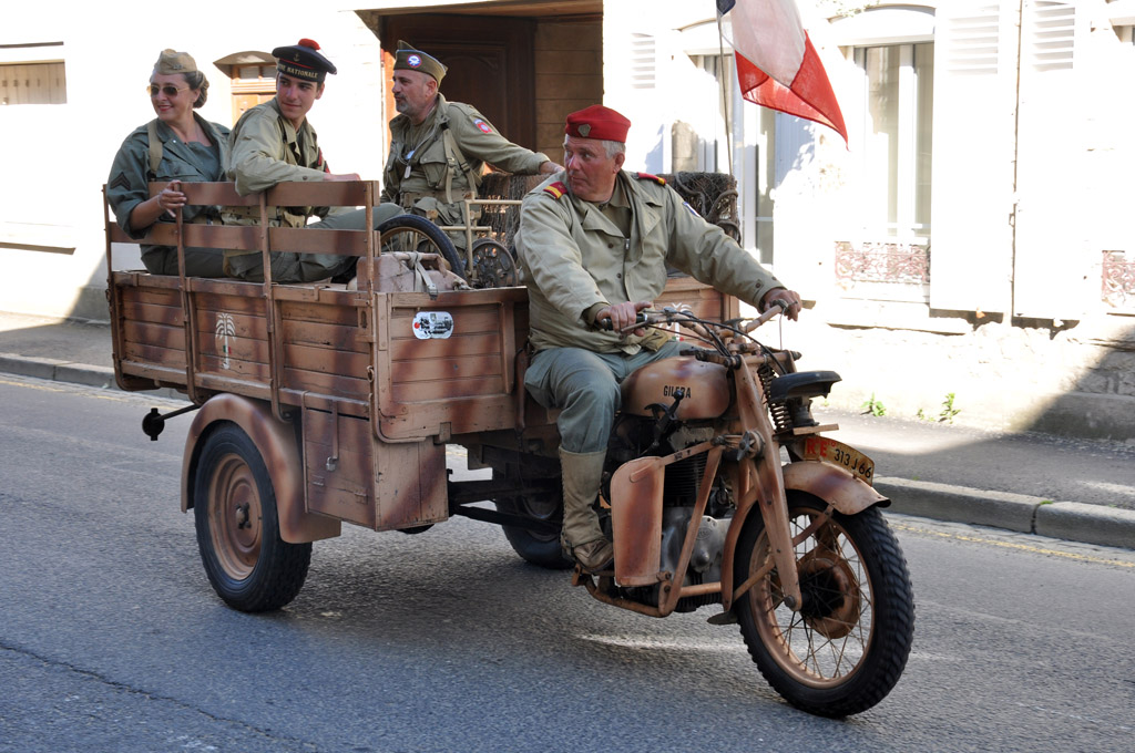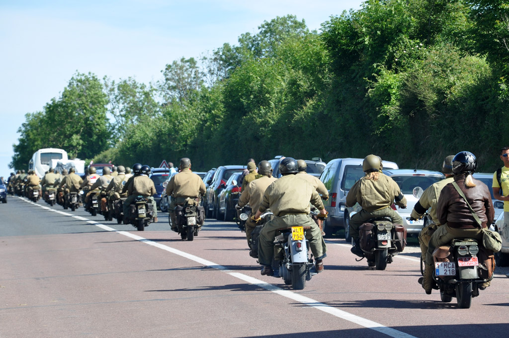 Nous croisons également le convoi composé de près de 70 Harley-Davidon WLA, organisé à l'occasion des commémorations du 70ème anniversaire du Débarquement et destiné à surpasser le record établi lors du 65ème anniversaire.
