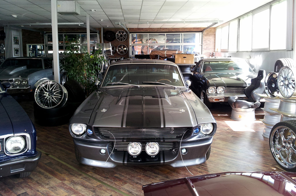 En rentrant d'une course à pieds, je suis passé par hasard devant "Felgendealer", vendeur de jantes à Offenbach. A l'intérieur et à l'extérieur se trouvaient quelques voitures américaines, dont cette Chevrolet Nova, cette Mustang Coupé au look d'Eleanor ou cette Musatng Coupé de 1969.