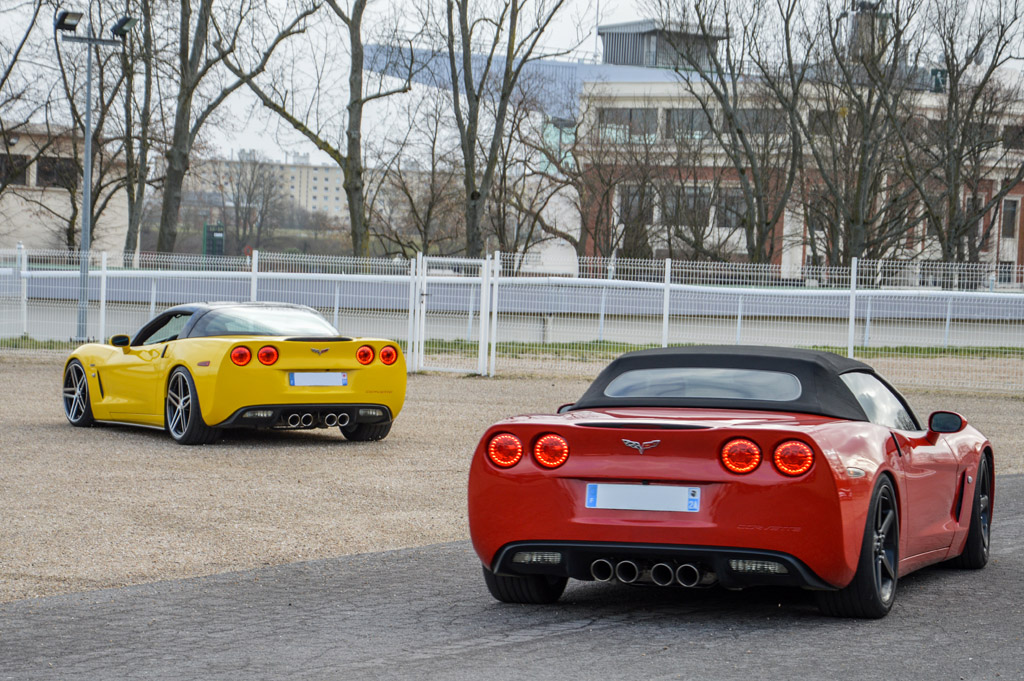 ... ou des américaines : Chevrolet Corvette C2, C3, C4, C5, C6 (dont des Z06), Camaro de 1ère et de dernière génération, Shelby GT500 ou Dodge Charger Super Bee.