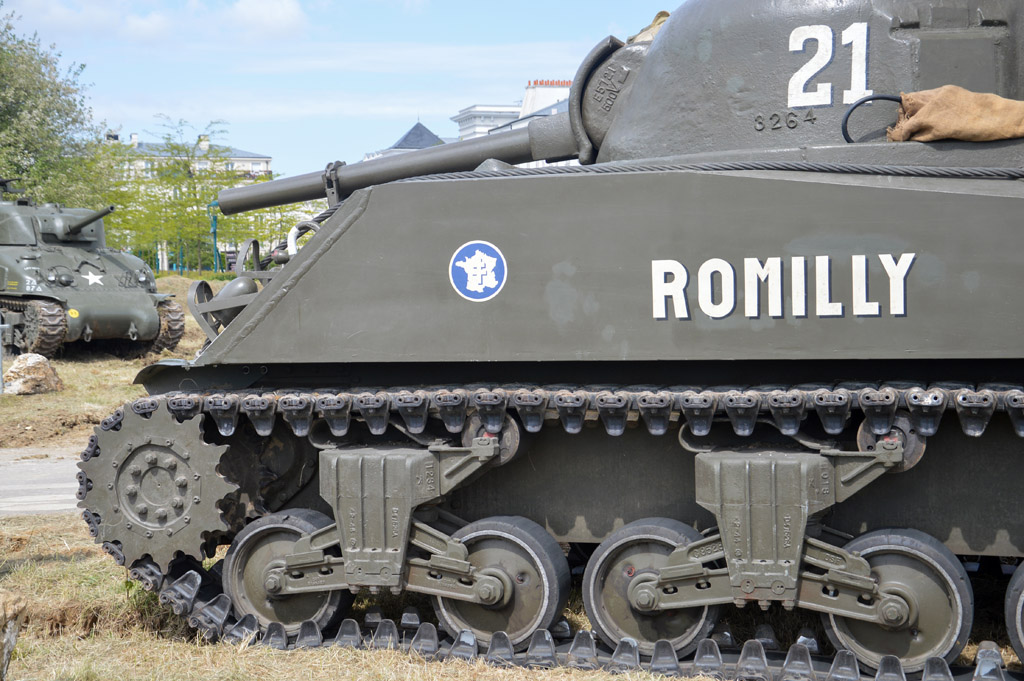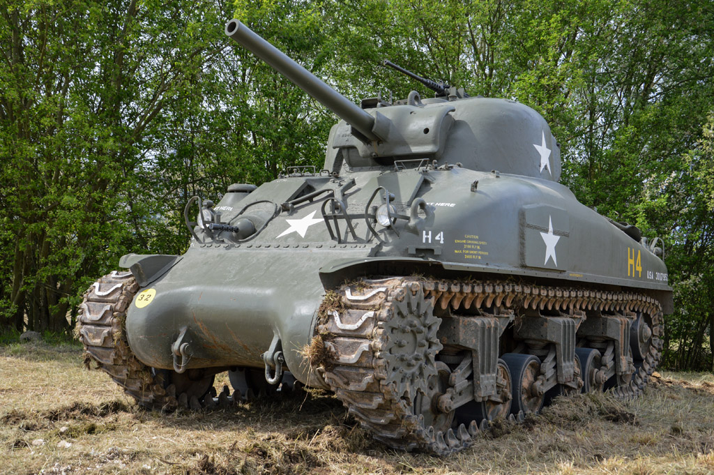 Je me dirige ensuite vers le camps et retrouve les deux chars américains, un Sherman M4A1 75mm, et un M4, équipé à l'origine d'une tourelle à canon de 105mm, mais restauré avec une tourelle de 75mm.