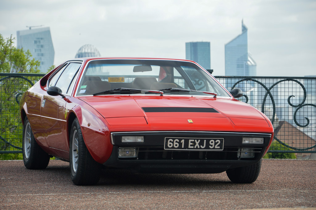 Deux styles d'italiennes complètement différents, une Ferrari 308 GT4 Dino, et une Lancia Lambda d'avant-guerre.