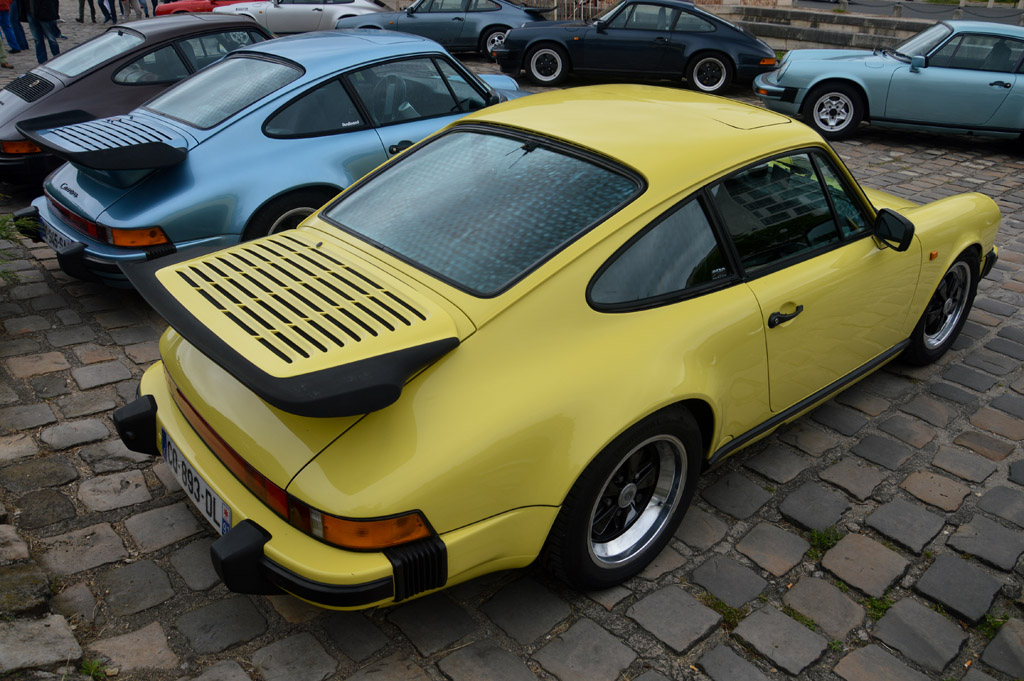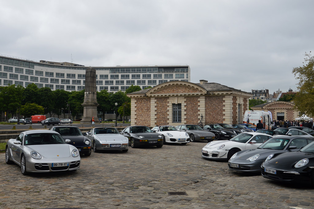 Rendez-vous insolite au coeur de l'Ecole Militaire située dans le 15ème arrondissement à Paris. Avant de prendre la route pour le circuit de Magny-Cours, les participants du Festival Porsche y exposaient leur voiture. Etant un site militaire, il fallait laisser sa carte d'identité à l'entrée pour accéder à l'enceinte. Tout autour du carousel destiné à entraîner les chevaux étaient garées une bonne centaine de Porsche, de la première 911 à la dernière 991, en passant par les 944, 928, Boxster ou Cayman. Quelques modèles sortaient un peu du lot, comme une 997 GT3RS 4.0, une Boxster Spyder ou encore une 911 Carrera RS 2.7.