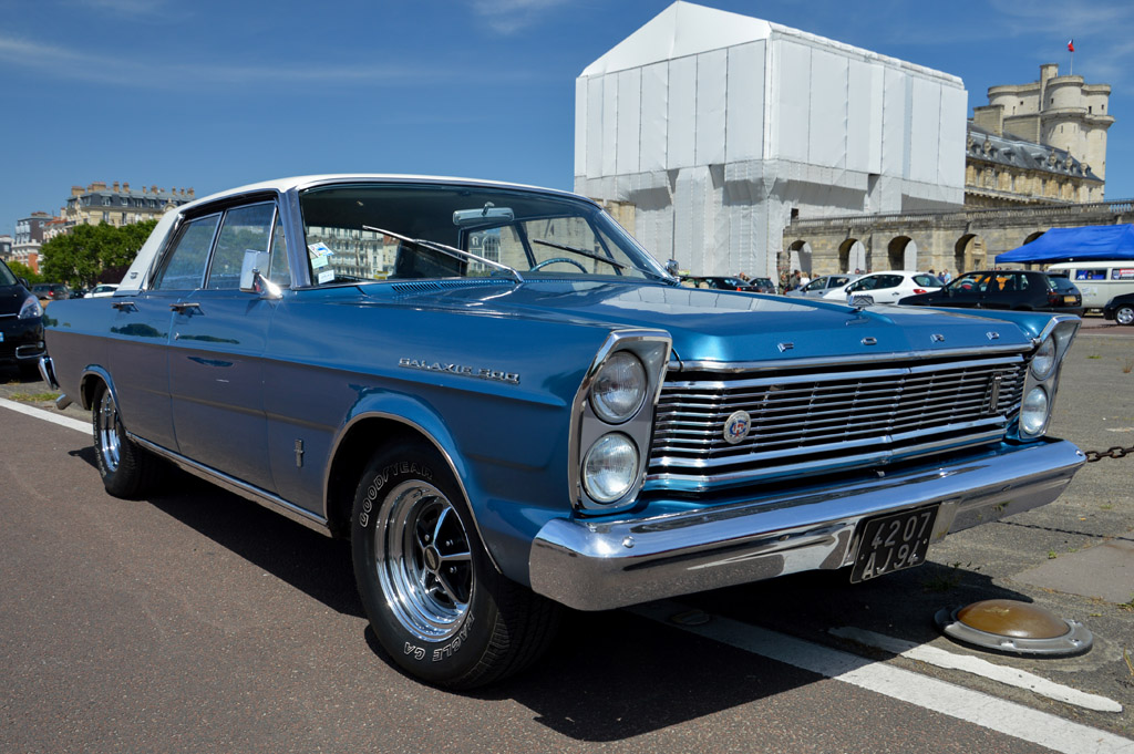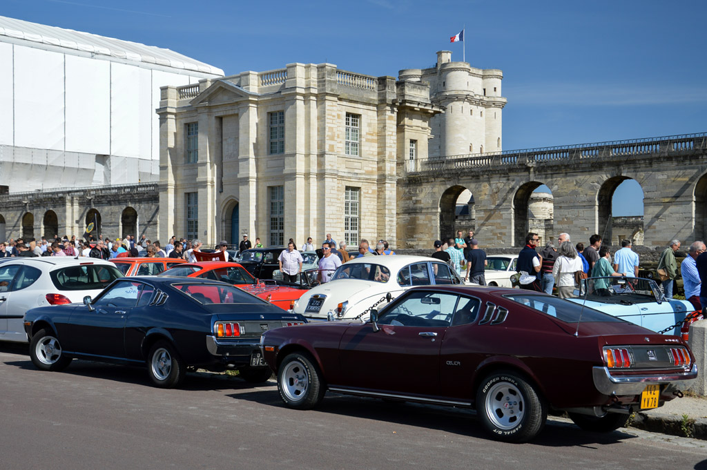 A peine arrivé, je constate que cadre sympatique et qualité des modèles présents sont au rendez-vous : Mercury Cougar avec en arrière plan le château, Ferrari 250 GTE 2+2 ou Lancia Flaminia GT.
