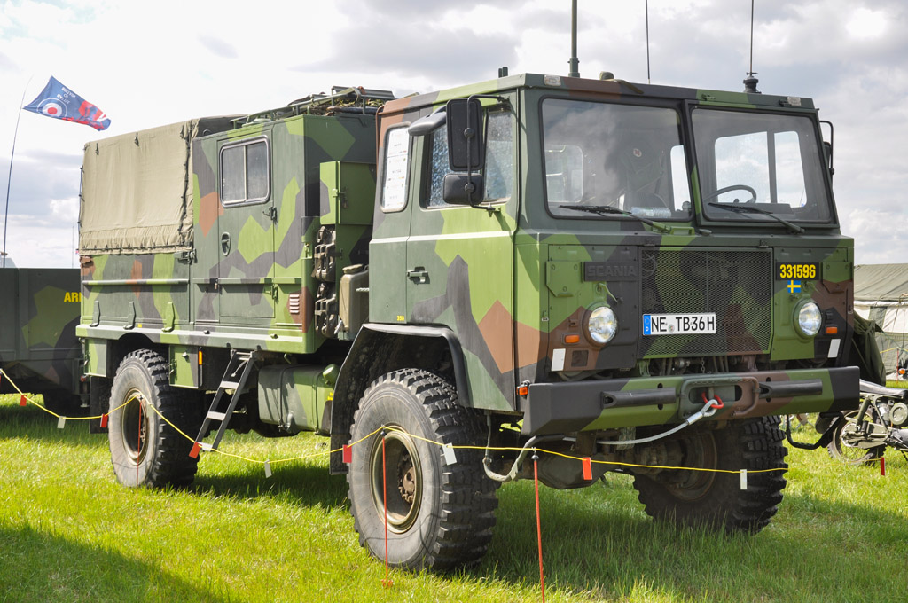 Plusieurs véhicules des surplus suédois : Ppvpjtgb 1111, Scania SBA 111 et Pbv 501 (tiré du BMP soviétique).