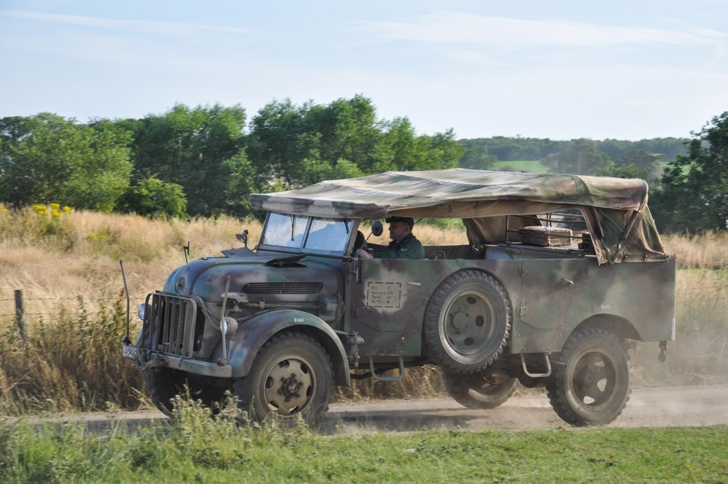 A part le Panzer IV et le Panther habituels, les véhicules allemands étaient rares cette année. On pouvait quand même voir entres autres ce Phänomen Granit, cette DKW, ce Steyer 1500 ou parmi les nombreux vrai/faux, cette fausse Schwimmwagen.
