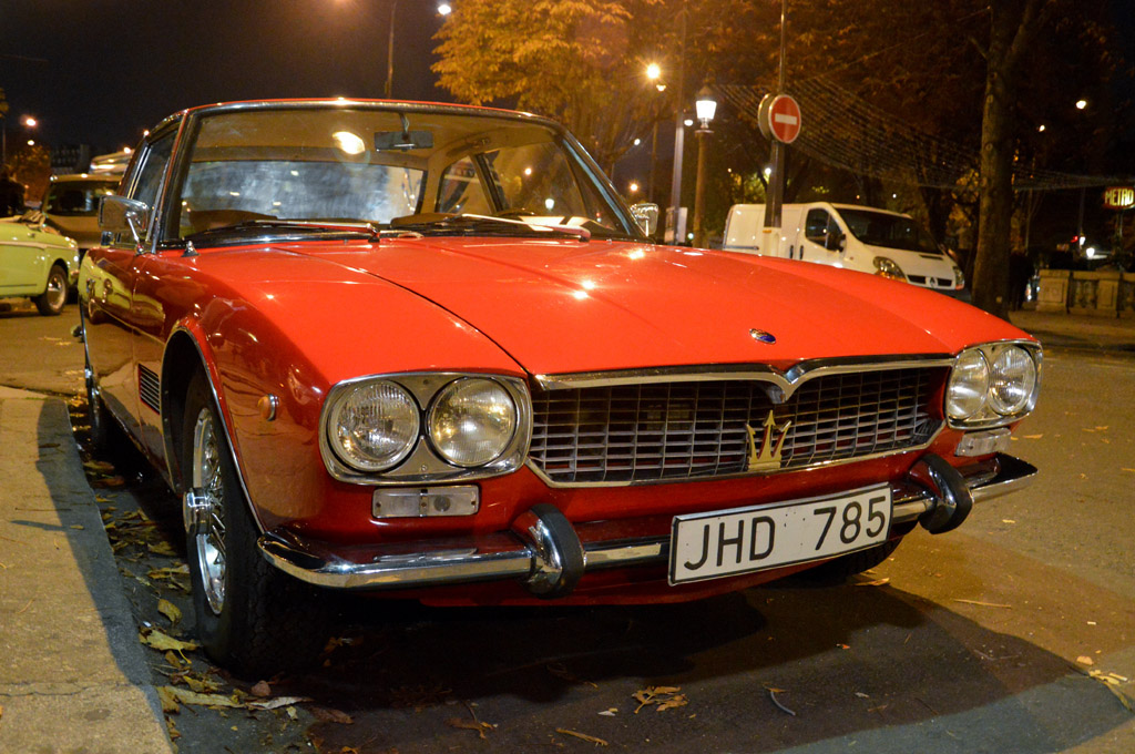 Je reviens devant Artcurial, d'autres voitures sont arrivées et arrivent : Maserati Mexico, Autobianchi Bianchina, BMW 3.0 CSL, Citroën Traction convertible,...