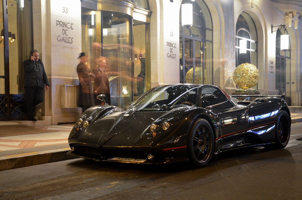 En attendant que d'autres voitures arrivent, je fais un tour du côté des hôtels de luxe pour tenter d'apercevoir d'autres belles choses. Bien m'en a pris, je suis retombé sur cette exceptionnelle Pagani Zonda F Roadster, croisée l'année dernière dans un parking souterrain.