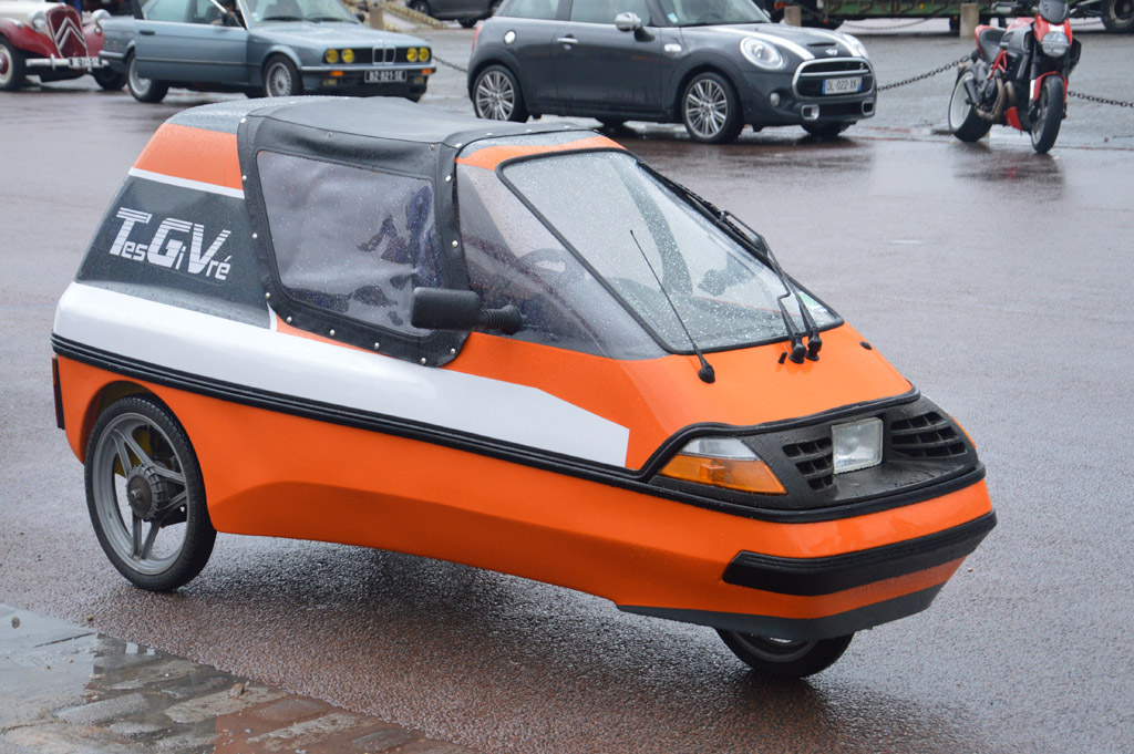 Enfin, quelques courageux ont également bravé la pluie sur des motos, comme cette Renet Gillet.